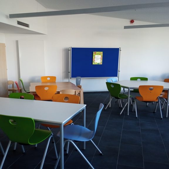 Mit Beginn des Schuljahres 2022/2023 haben wir das neu gebaute Gebäude auf dem Schulhof bezogen.